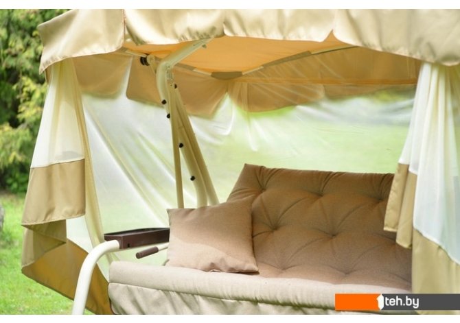 | Информация | ? Мягкий элемент: - Размер спинки: 1955х770 мм - Размер сиденья: 1955х540 мм ? Мягкий элемент: - Ткань: 40% п/э; 60% хлопок - Плотность: 220-230г/м2 - Наполнитель: поролон листовой + синтепон (общая толщина 100мм) ? Подушки – 2 шт. ? Увеличенная длина сиденья. ? Декор сиденья и спинки пуговицами (или тафтингом). ? Тент: - Ткань с водоотталкивающей отделкой: 100% п/э - Плотность: 125-130г/м2 ? Сетка противомоскитная с боковыми вставками. |