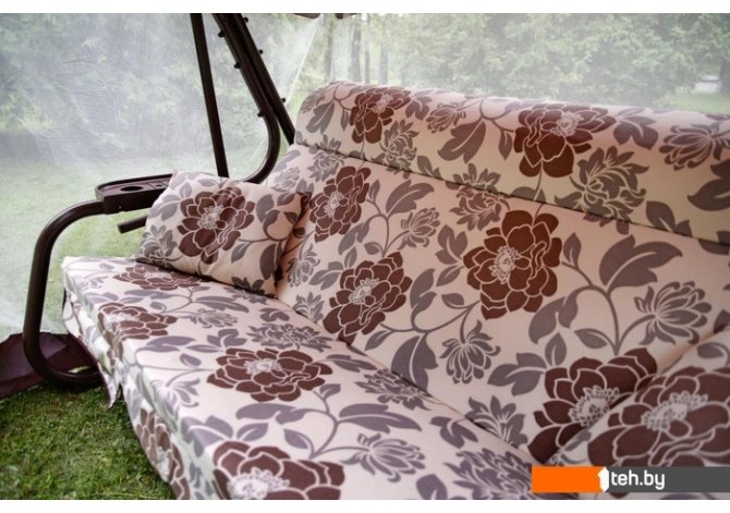 | Информация | ? Габаритные размеры сиденья, спинки и тента (длина х ширина): - Размеры сиденья: 1790х540 мм - Размеры спинки: 1790х755 мм - Размеры тента: 2220х1430 мм ? Каркас: - Труба стальная ? 51х1,4мм - Полимерное покрытие - Полка - 2 шт. ? Мягкий элемент: - Ткань 40% п/э – 60% хлопок, плотность 108-111г/м2 - Наполнитель мягкого элемента поролон толщиной 80 мм - Наполнитель подушек - синтепон (полотно полиэфирное объемное) - Подушки – 4 шт. ? Тент: - Ткань с водоотталкивающей отделкой 100% п/э плотность 125г/м2 или 90г/м2 - С противомоскитной сеткой (полотно гардинное основовязаное 100% п/э плотность 39г/м2) - Фиксация сетки на тканевом тенте осуществляется с помощью горизонтальных и вертикальных застежек – «молний». ? Регулировка спинки: - Для раскладывания спинки поднимается ручка трансформации - Фиксаторы, расположенные на спинке, защелкиваются на дуге. |