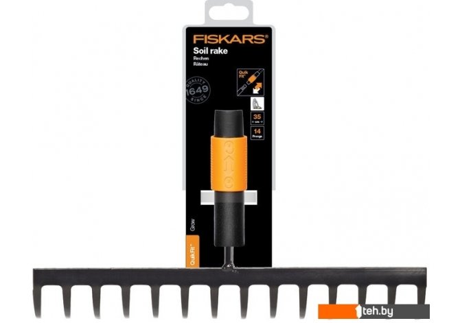 | Информация | Fiskars Soil Rake (14 Prongs) - универсальные грабли для грунта с 14 стальными зубьями. Подойдут для сгребания листьев или мусора, а также для подготовки грядок перед посевом семян. |