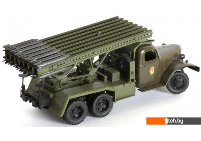 | Информация | Историческая справка: Гвардейский реактивный миномет БМ-13 «Катюша», созданный в 1941 году, оказался едва ли не самой известной боевой машиной периода Второй мировой войны. Данная конструкция пусковой установки широко применялась в войсках и устанавливалась на разные автомобильные шасси. В некоторых странах БМ-13 стоит на вооружении до сих пор. |