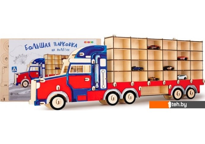 | Информация | Ваш ребенок очень любит коллекционировать миниатюрные автомобили и мечтает о большом и красивом паркинге для них? Конструктор «Большая парковка на колесах» – отличный подарок для маленьких и больших детей от 3 до 99 лет.«Большая» – потому что целых 81 см в длину, и вмещает в себя 25 автомобилей или все поделки, сделанные своими руками. Размер 24-х парковочных мест – 4,5х7,8 см, 25-е место для машины побольше.«На колёсах» – потому что колёса подвижные, и парковка перевезёт весь автопарк на любые «дальние расстояния», которые придумает фантазия ребёнка.Собери конструктор из 132 деталей! Подробная инструкция входит в комплект. Сборка по схеме развивает логику, моторику рук, пространственное воображение. Создавая из простых деталей большую машину, мальчик почувствует себя инженером, творцом и настоящим мужчиной.Погрузись в мир фантазии и творчества! Разукрась парковку по своему вкусу карандашами, фломастерами или красками. Для декора подойдут металлические детали, пластилин, цветная бумага, фольга, наклейки и др. Придумай свой уникальный дизайн или вдохновись образами любимых мультфильмов или фильмов: «Тачки», «Щенячий патруль», «Трансформеры», «Форсаж». Играй с друзьями в «большое путешествие», придумывай интересные сюжеты.На большой парковке сверху есть крючки для возможности повесить её на стену в детской. Уникальный предмет декора детской комнаты, сделанный своими руками, будет радовать глаз и удивлять друзей. |