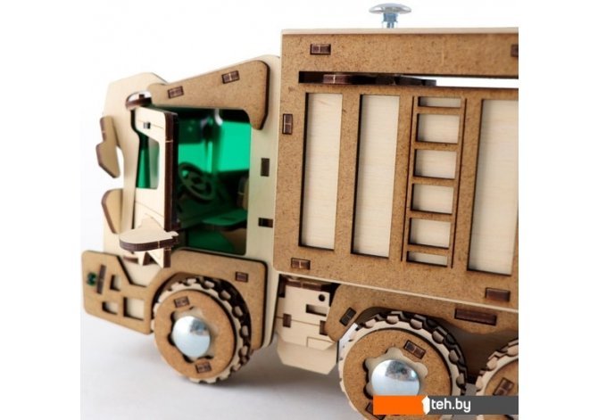 | Информация | Сборка набора-конструктора «Спецтехника. Мусоровоз» – занимательное занятие для всех любителей 3D-моделирования, техники и головоломок. Надежное крепление деталей обеспечивается за счет хорошо продуманной конструкции и не требует склейки. Корпус имеет подвижные прессующие камеры, открывающиеся двери кабины, подъемное отделение для сбора мусора – всё как в настоящей грузовой технике. Для подвижности деталей, модель разработана с учетом технологических и механических конструкторских решений. Особый брутальный образ создается за счет строгих лаконичных форм и комбинирования надежных материалов: древесины, МДФ, хромированного металла и вставок из полупрозрачного пластика (оргстекла) зеленого цвета.Складывание 3D-конструктора занимает около часа и позволяет «освободить» голову от повседневных мыслей, задействуя в процессе моторику, логическое и пространственное мышление и концентрацию. Набор рекомендован для детей от 12-ти лет и взрослых.Для удобства во время сборки модели «Спецтехника. Мусоровоз» в набор входит подробная инструкция с картинками и ключ для закручивания болтов. |