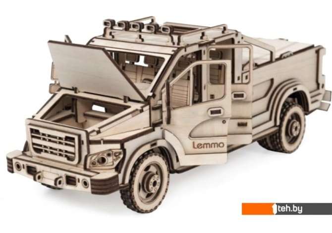 | Информация | У деревянного конструктора много подвижных частей, а именно: - открываются дверцы кабины, - открывается крышка капота и кузова, - открывается задний борт, - вращаются колёса. |