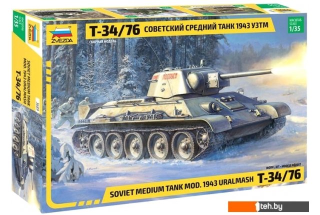 Фотографии, описание и технические характеристики модели Звезда Советский средний танк Т-34/76 1943 УЗТМ взяты из открытых источников, официального сайта производителя или представительства Звезда в Республике Беларусь.