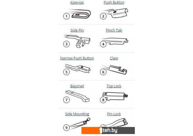 | Вид крепления | Pinch Tab (Боковой зажим), Side Pin (Боковой штырь), Top Lock (Верхний замок) |