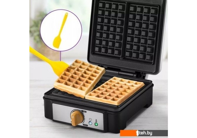 | Информация | Для вкусных бельгийских вафель С помощью электрической вафельницы КТ-1692 можно испечь толстые бельгийские вафли. Разнообразные рецепты этого лакомства и простота приготовления сделают ваши завтраки самыми вкусными. 5 минут и золотистые вафли готовы! Плавная регулировка температуры Прибор оснащён индикатором питания и индикатором нагрева. Ручка регулировки температуры является ручкой термостата. Термостат обеспечивает возможность плавно регулировать температуру и поддерживать её в процессе приготовление. Всё для вашего комфорта Корпус выполнен из термоустойчивого пластика, а панели имеют антипригарное покрытие, что позволяет легко и просто готовить любимый десерт. Благодаря антипригарному покрытию готовить вафли можно с минимальным количеством масла. Силиконовая лопатка в комплекте В комплекте к прибору идёт силиконовая лопатка, которая является универсальной кухонной принадлежностью. При помощи лопатки можно легко снимать готовые вафли с формы. |