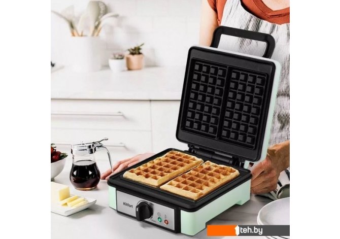 | Информация | С помощью электрической вафельницы КТ-1693 можно испечь толстые бельгийские вафли. Разнообразные рецепты этого лакомства и простота приготовления сделают ваши завтраки самыми вкусными. 5 минут и золотистые вафли готовы! Плавная регулировка температуры Прибор оснащён индикатором питания и индикатором, показывающим включение и отключение нагрева. Ручка обеспечивает возможность плавно регулировать температуру и поддерживать её в процессе приготовление. Всё для удобства приготовления любимого десерта Корпус выполнен из термоустойчивого пластика, а панели имеют антипригарное покрытие, что позволяет легко и просто готовить любимый десерт. Благодаря антипригарному покрытию готовить вафли можно с минимальным количеством масла. Длина шнура - 1,2 м На нижней части корпуса расположен держатель шнура, обеспечивающий удобство переноски и хранения. Также вафельница имеет прорезиненные ножки, которые противостоят скольжению устройства. |