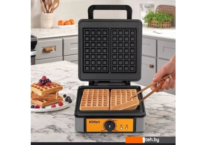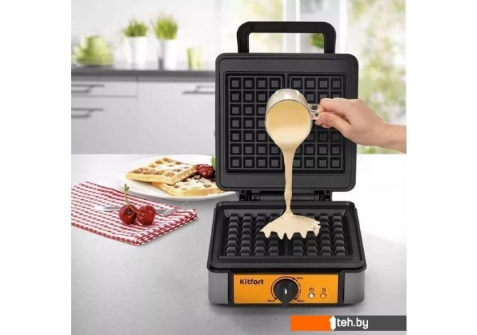 | Информация | Будем завтракать вместе! С помощью электрической вафельницы Kitfort КТ-1694 можно за считанные минуты приготовить толстые бельгийские вафли. В среднем выпекание вафли занимает около 5 минут. Прибор не занимает много места на кухне. Всё просто Индикатор нагрева горит в то время, когда вафельница разогревается. Когда рабочие поверхности, достигнут температуры, определяемой термостатом, нагрев выключится, и индикатор нагрева погаснет. Ручка регулировки температуры является ручкой термостата. Ничего не пригорит! Благодаря антипригарному покрытию готовить вафли можно с минимальным количеством масла: масло добавляется в тесто, поэтому при выпечке оно не разбрызгивается в разные стороны. Готовить одно удовольствие Корпус вафельницы выполнен из термоустойчивого пластика. В комплекте поставляется силиконовая кисть, при помощи которой удобно смазывать формы маслом. Провода не помешают! На нижней части корпуса расположен держатель шнура, обеспечивающий удобство переноски и хранения. Также вафельница имеет прорезиненные ножки, которые противостоят скольжению устройства. |