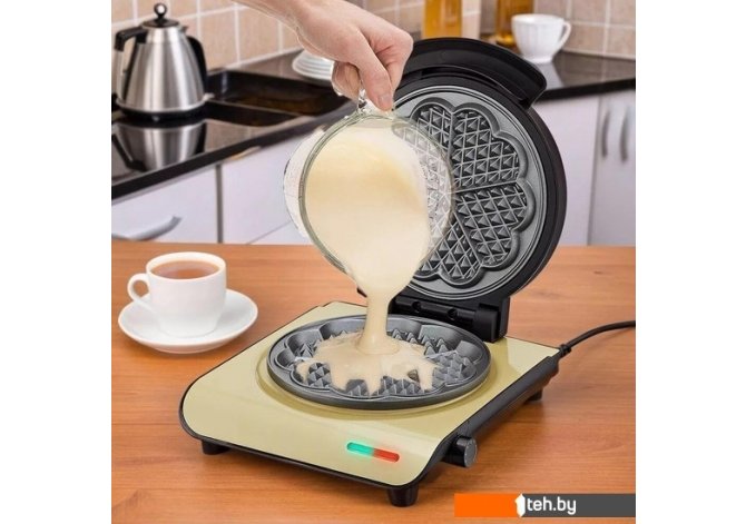 | Информация | ? Вафельница КТ-3693 позволяет приготовить бельгийские вафли, которые можно разделить на маленькие сердечки или приготовить одну большую в форме цветка. ? Модель подходит для большой семьи, так как позволяет готовить сразу несколько вафель. ? Вафельница оснащена индикатором питания, термостатом для поддержания температуры панелей и индикатором нагрева. ? Нагреватели установлены в каждой половине вафельницы. ? Панели имеют антипригарное покрытие, что упрощает процесс готовки и позволяет использовать минимальное количество масла или совсем без него. ? Универсальный дизайн вафельницы, выполненный из пластика, подходит для любой кухни. ?? Ручка устройства не нагревается во время использования, что позволяет не использовать прихватки. ? Противоскользящие ножки предотвращают скольжение вафельницы по столу во время готовки. |