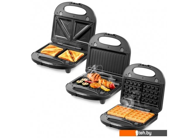 | Рабочая поверхность | гриль-пластина, форма для 2 ломтиков хлеба, вафельница |