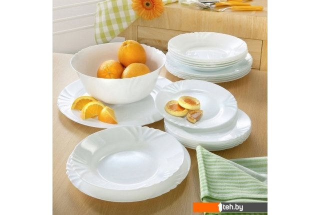 | Информация | В наборе: десертная тарелка: диаметр 19.5 см – 6 шт, обеденная тарелка: диаметр 25 см – 6 шт, суповая тарелка нового образца (более глубокая): диаметр 23 см - 6 шт, большой салатник: диаметр 21.5 см -1 шт. |