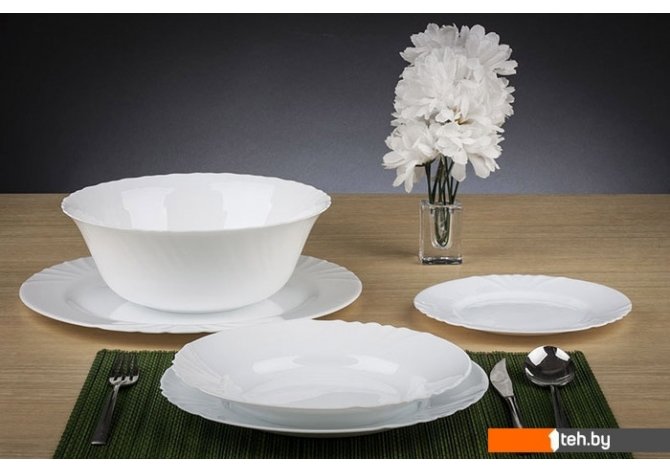 | Состав набора посуды | обеденная тарелка, суповая тарелка, десертная тарелка, салатник большой |