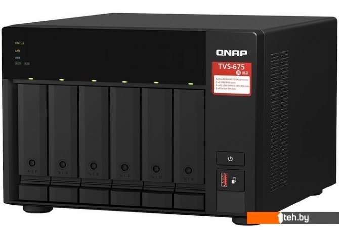 Фотографии, описание и технические характеристики модели сетевого накопителя QNAP TVS-675-8G взяты из открытых источников, официального сайта производителя или представительства QNAP в Республике Беларусь.