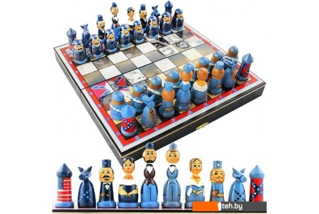| Информация | Настольная игра в шахматы экологична, изготовлена из натурального дерева, расписана вручную и покрыта лаком; Шахматный набор - отличный подарок для друзей и близких, идеально подходит в качестве детских игрушек на тему гражданской войны в США; Размеры деревянной шахматной доски 30х30 см. |