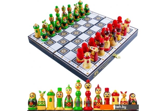 Информация | Шахматный набор Брестской сувенирной фабрики не оставит равнодушными любителей и профессионалов. Шахматы с национальным колоритом - отличный подарок для семьи, друзей и детей. Это издание шахматного набора матрешек отличается высоким качеством изготовления. Набор изготовлен, раскрашен, покрыт лаком, декорирован и отделан вручную. Шахматный набор Брестской Сувенирной Фабрики станет отличным подарком не только для начинающих или профессиональных игроков, но и для любителей предметов русского народного творчества, а также послужит развивающей настольной игрой для детей. Вы можете организовывать оффлайн-турниры и чемпионаты в своей семье или среди друзей. Складная шахматная доска изготовлена из высококачественного дерева, что делает ее прочной в использовании, изнутри отделана войлоком, закрывается на латунную застежку. В наборе 32 фигурки. Общий вес - 1100 грамм. Складной портативный шахматный набор легко брать с собой в путешествия. В сложенном виде доска надежно закрывается латунной застежкой. |