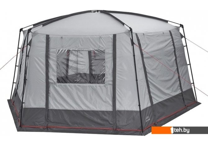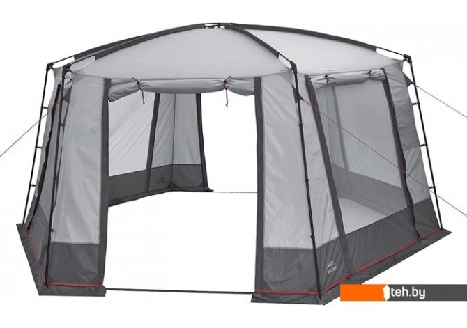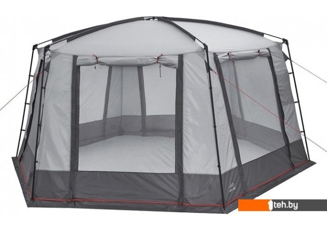 | Информация | Большой и просторный шатер шестиугольной формы Trek Planet Siesta Tent прекрасно подойдет для продолжительного кемпинга. Внушительная площадь 14 квадратных метров и высота 225 см создают огромное внутреннее пространство, в котором комфортно поместится большая компания со столами и стульями. При этом благодаря простой конструкции шатер собирается двумя людьми за 10 минут. Шестиугольная форма и ветровые оттяжки обеспечивают максимальную устойчивость к ветру. Все стороны оснащены москитными сетками для эффективного проветривания. Каждую из них можно закрыть для надежной защиты от дождя. На двух дверях расположены большие обзорные окно со шторкой. Для удобного использования внутри предусмотрены карманы из сетки, в которые можно положить продукты, одежду, настольные игры и другие нужные вещи. |