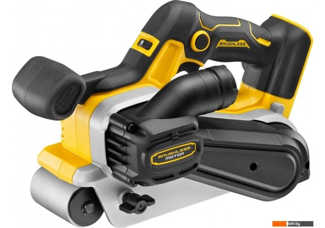 | Информация | Designed with the professional in mind DEWALT's First 18V XR 75 x 533mm Cordless Belt Sander is ideal for carpentry, remodeling, and general contracting. The variable speed trigger with lock-on 5 speed selection dial allows for control for various applications. The quick release belt change allows sandpaper to be changed easily. With the over-mold auxiliary handle it gives you two- handed operation and grip for scribing applications. The dust collection features include a tool-free Dust Port Swivel adapter, that is compatible with DEWALT's Airlock System or a standard 35mm dust extractor to minimise dust during sanding. Wireless Tool Contro System allows for ease of use when paired with compatible DEWALT vacuum or dust extractor. With a Brushless Motor, this cordless belt sander can achieve long runtime and efficiency. |