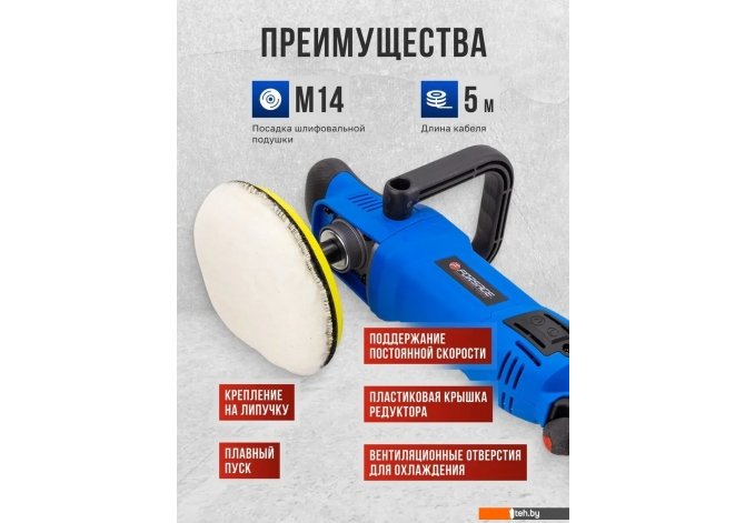 | Информация | -Ключевые характеристики Эта полировальная машина предназначена для эффективной шлифовки и полировки различных поверхностей. Мощность 1200 Вт и регулировка скорости вращения в диапазоне 500 - 3500 об/мин позволяют использовать инструмент для грубой обработки и тонкой доводки. Диаметр рабочего диска составляет 150 мм, а длина кабеля достигает 5 м, что обеспечивает свободу передвижения при работе. -Преимущества и отличия Модель оснащена щеточным электродвигателем, который обеспечивает стабильную производительность. Плавный пуск способствует безопасному запуску и уменьшает износ деталей. Дополнительная рукоятка и небольшой вес 3.1 кг гарантируют удобство и надежный захват даже при длительной эксплуатации. -Практичность Инструмент не поддерживает подключение к пылесосу, но в комплекте идут необходимые аксессуары для начала работы:комплект угольных щеток, ключ, полировальный круг, шлифовальная подошва и дополнительная рукоятка. Длинный кабель 5 м дает возможность работать вдали от розетки. -Уникальность Модель выделяется сочетанием высокой мощности и возможностью плавной регулировки оборотов, что редко встречается в сегменте доступных полировальных машин. Прочная конструкция и расширенная комплектация делают этот инструмент отличным выбором для домашнего и профессионального использования. Читать дальше |