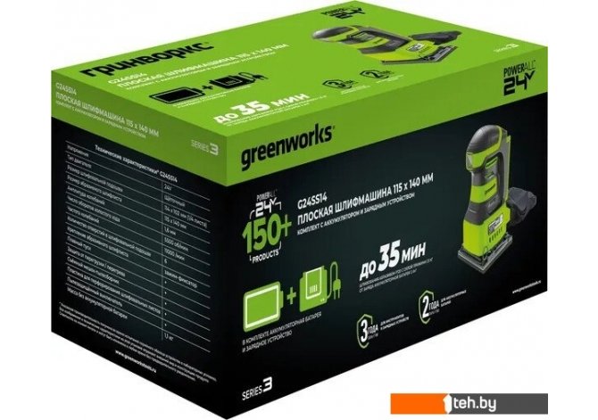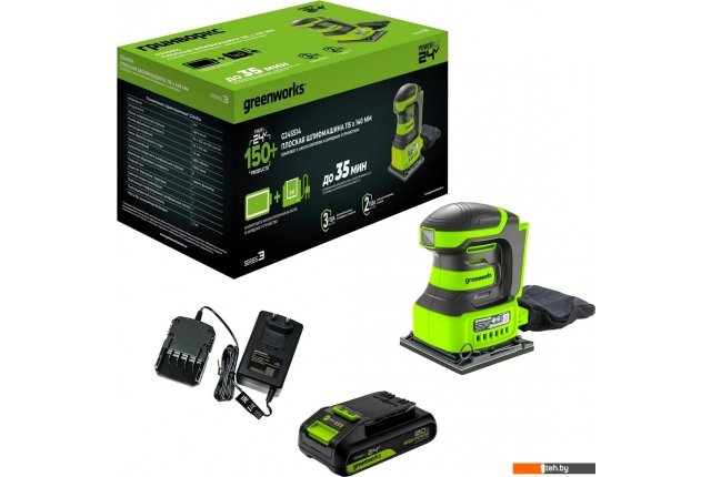 Фотографии, описание и технические характеристики модели шлифмашинки Greenworks G24SS14 3100507CUA (с 1-им АКБ) взяты из открытых источников, официального сайта производителя или представительства Greenworks в Республике Беларусь.