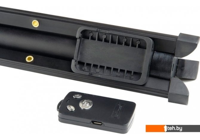 | Информация | Компактный телескопический штатив предназначен для стабилизации фотокамеры, смартфона, экшн-камеры или любого другого оборудования весом до 300 г. Bluetooth пульт ДУ, адаптер для смартфона и чехол в комплекте. Максимальная рабочая высота 130 см, вес 290 г.Пять телескопических секций раздвижных ножек изготовлены из алюминиевого сплава, высота штатива в разложенном виде составляет 130 см, в сложенном 43 см. Фиксация положения ног штатива — винтовая. На ножках предусмотрены резиновые наконечники, которые предотвратят скольжение, а при установке штатива на стол также обеспечат сохранность столешницы. Для приведения штатива в рабочее положение, следует выдвинуть секции и повернуть их по часовой для полной фиксации.На верхней секции штатива находится поворотная голова с винтом с резьбой 1/4? на который устанавливается комплектный адаптер для смартфона. Для удобства фиксации адаптера на головке предусмотрено вращающееся кольцо в основании головки (к этому кольцу жёстко прикреплён винт с резьбой 1/4?, на который и устанавливается адаптер, крепление адаптера к винту 1/4? производится вращением этого кольца).Фиксация угла наклона головки — винтовая, головка заклоняется от 0 до 90° (с трещоточным механизмом).В основании головки находится выпуклое зеркало для правильной ориентации смартфона во время селфи.При сложенных ножках, штатив можно использовать как палку для селфи длиной от 43 до 128 см, её удобно держать в руках т. к. диаметр штатива со сложенными ножками составляет всего около 50 мм.Пульт ДУВ комплекте пульт ДУ для управления камерой смартфона. В «походном» положении пульт устанавливается в гнездо, находящийся в основании штатива.На лицевой поверхности расположены три кнопки для управления камерой смартфона и светодиодный индикатор режимов работы, с правой стороны выключатель питания, а с левой стороны microUSB разъём для подзарядки встроенного аккумулятора. Для предотвращения потери пульта на верхней его части есть ушко для кистевого или нашейного ремешка (в комплект не входит).Пульт работает со смартфонами на iOS и Android по протоколу Bluetooth. Для управления камерой смартфона нет необходимости устанавливать дополнительное программное обеспечение. Эффективная дальность работы пульта около 10 м.Адаптер для смартфонаДля установки смартфона на штатив предназначен комплектный адаптер. Он позволяет установить устройство шириной от 54 мм до 88 мм. На корпусе адаптера есть две закладные металлические гайки с резьбой 1/4? для установки на адаптера на штатив или крепления к адаптеру дополнительного оборудования (микрофон, осветитель и пр). Лапки адаптера закрыты эластичными накладками. Это не позволит выскользнуть телефону или получить царапины на его корпусе во время съёмки.ЧехолДля транспортировки и хранения в комплекте предусмотрен тканевый чехол. |