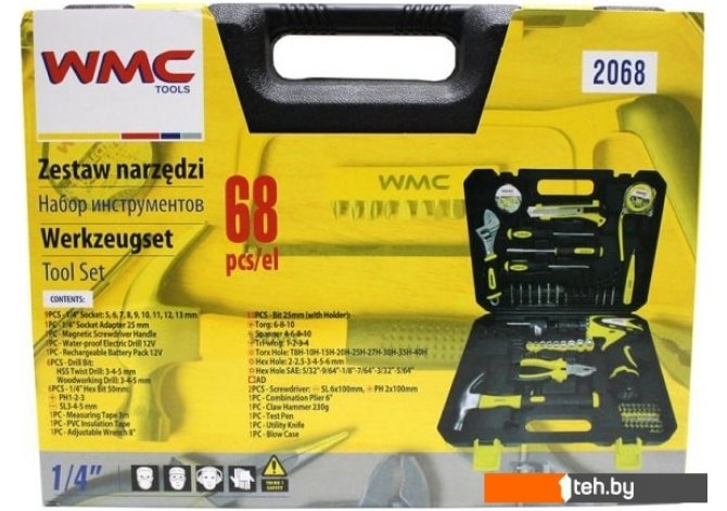 Фотографии, описание и технические характеристики модели WMC Tools 2068 (с 2-мя АКБ, кейс, набор оснастки) взяты из открытых источников, официального сайта производителя или представительства WMC Tools в Республике Беларусь.