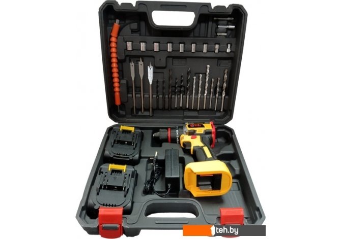 | Комплектация | Дрель Аккумуляторная батарея - 2 Зарядное устройство Гибкий вал Набор сверел - 6 Набор бит - 6 Набор накидных головок - 7 Переходник - 2 Руководство по эксплуатации Упаковка (кейс пластиковый) |