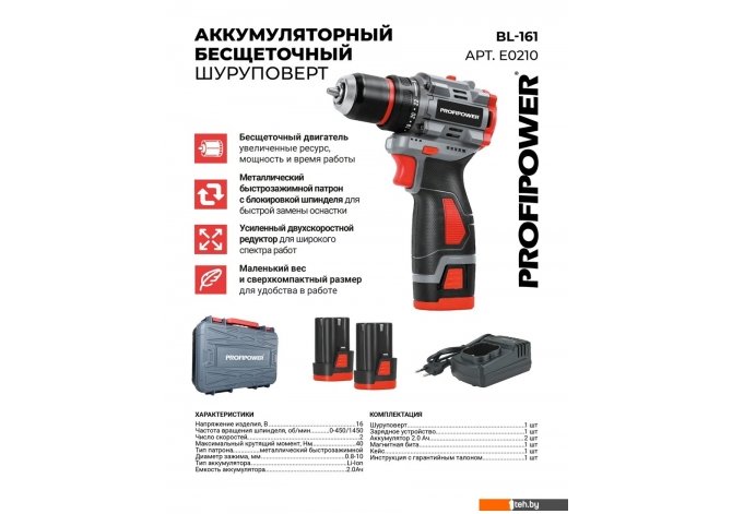 Фотографии, описание и технические характеристики модели Profipower BL-161 (с 2-мя АКБ, кейс) взяты из открытых источников, официального сайта производителя или представительства Profipower в Республике Беларусь.