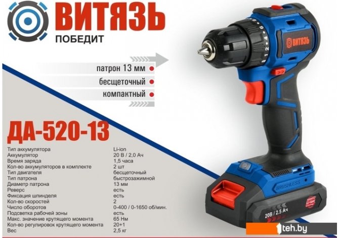 Фотографии, описание и технические характеристики модели Витязь ДА-520-13 18012022 (с 2-мя АКБ, кейс, набор оснастки) взяты из открытых источников, официального сайта производителя или представительства Витязь в Республике Беларусь.