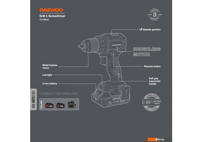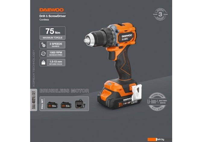 Фотографии, описание и технические характеристики модели Daewoo Power DAA 4021Li Set (с 2-мя АКБ, кейс) взяты из открытых источников, официального сайта производителя или представительства Daewoo Power в Республике Беларусь.
