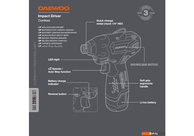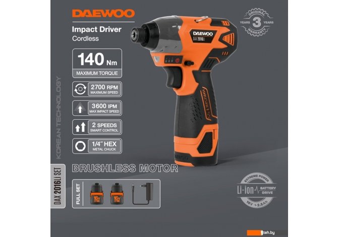 Если хотите купить Daewoo Power DAX 2016Li Set (с 2-мя АКБ, сумка) то следует уточнить все параметры и габариты модели перед покупкой. Представленые характеристики на сайте 1teh.by могут отличаться от действительных или указанных производителем. Описание, фото товара и технические характеристики представлены для справки.
