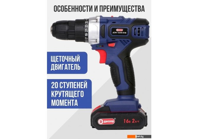| Информация | - Дрель-шуруповерт ручная электрическая аккумуляторная ДЭА-16ЛИ-01М 10022163 (с 2-мя АКБ, кейс) предназначена для сверления отверстий в различных конструкционных материалах, а также для заворачивания (отворачивания) винтов и шурупов. - Предназначена для бытового применения. В дрели-шуруповерте предусмотрено плавное изменение числа оборотов шпинделя, а также изменение направления его вращения на противоположное (реверсирование). - Дрель-шуруповерт ДИОЛД ДЭА-16ЛИ-01М 10022163 оснащена 2-мя аккумуляторами и поставляется в компактном кейсе. - Важно: Использовать только для сверления и заворачивания винтов в бытовых условиях. |