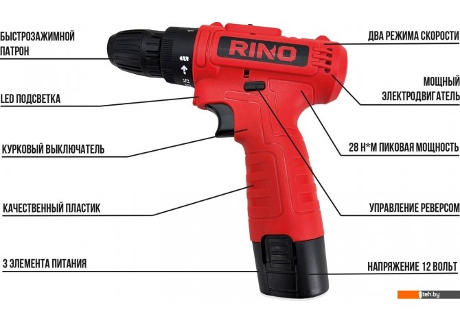 | Информация | - Аккумуляторная дрель-шуруповерт RINO DRL3-1 обеспечивает мобильность и удобство в работе. - Благодаря аккумулятору, она не требует подключения к сети и обеспечивает длительное время работы без подзарядки. - Этот инструмент идеально подходит для работы дома или в мастерской благодаря своей высокой производительности, функциональности и мобильности. |
