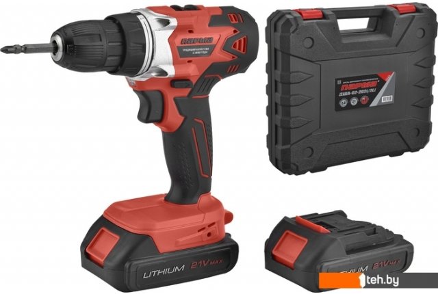 | Комплектация | - Кейс - Дрель-шуруповерт - Аккумулятор 2 шт. - Зарядное устройство - Бита |