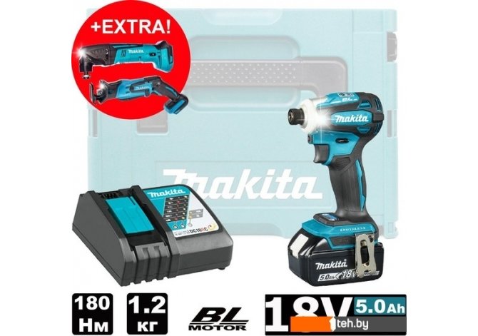 | Комплектация | Аккумуляторный ударный винтоверт; Скоба для пояса; 1 аккумулятор 18V 5.0 Ah; Зарядное устройство DC18RC; Инструкция; Кейс MakPac |
