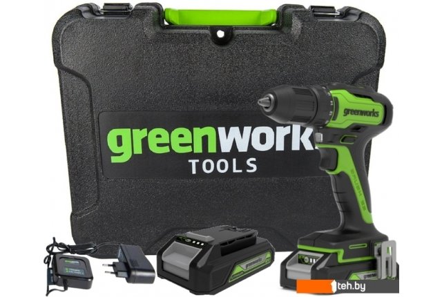 | Комплектация | Дрель-шуруповерт Аккумулятор Greenworks 24V 2Ач Зарядное устройство слайдер (0,5 А) Пластиковый кейс Руководство по эксплуатации |