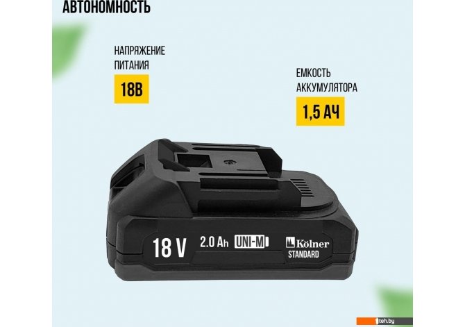 Фотографии, описание и технические характеристики модели Kolner KCD 18LC (с 2-мя АКБ, кейс) взяты из открытых источников, официального сайта производителя или представительства Kolner в Республике Беларусь.
