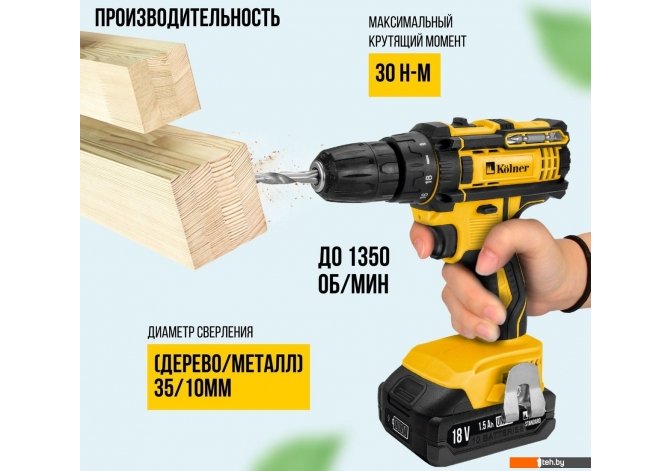 | Информация | Аккумуляторная дрель-шуруповёрт KOLNER KCD 18LC — идеальный инструмент для дома и профессиональных задач. С этим устройством вам доступна максимальная мощность и удобство работы. Он оснащён литий-ионным аккумулятором 18 В и ёмкостью 1,5 А·ч, который заряжается всего за 2-3 часа. Вы получите высокую производительность благодаря числу оборотов на холостом ходу от 0 до 1450 об/мин и максимальному крутящему моменту 29 Н·м. Инструмент обладает 18 ступенями крутящего момента плюс одна для сверления, что позволяет точно настраивать его под любые задачи. Быстрозажимной двухмуфтовый патрон с диаметром зажима 0,8 - 10 мм гарантирует надёжную фиксацию оснастки. Максимальные диаметры сверления: дерево — до 20 мм, сталь — до 14 мм. Удобство в работе и хранении обеспечивают масса инструмента всего 1,3 кг и пластиковый кейс в комплекте. Вы также получите два аккумулятора, зарядное устройство, клипсу и две биты. KOLNER KCD 18LC — это мощный и надёжный инструмент, который справится с любыми задачами. |