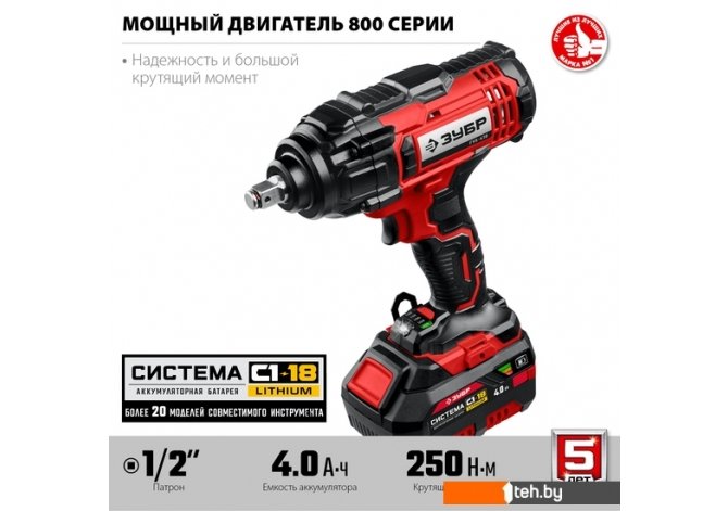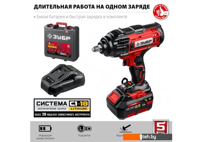 | Комплектация | Гайковерт Аккумулятор Зарядное устройство Кейс Руководство по эксплуатации |