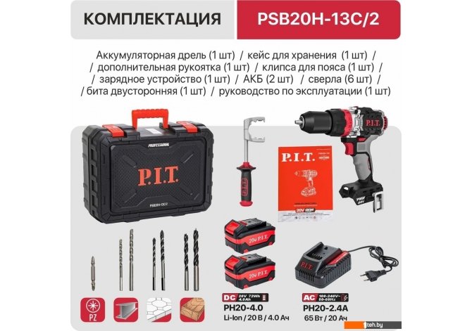 Фотографии, описание и технические характеристики модели P.I.T. PSB20H-13C/2 (с 2-мя АКБ, кейс) взяты из открытых источников, официального сайта производителя или представительства P.I.T. в Республике Беларусь.