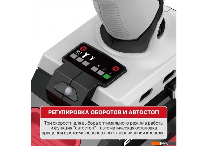 | Информация | -Аккумуляторный бесщеточный ударный винтоверт P.I.T. PSD20H-230A предназначен для работы с крепежом большого размера и сверления отверстий в различных материалах. Инструмент оснащён бесщеточным двигателем, что обеспечивает высокий КПД, долгий срок службы и меньшее нагревание, а значит – более длительное время работы на одной зарядке. -Редуктор выполнен полностью из металла, а ударный механизм с тангенциальным ударом позволяет развивать высокий крутящий момент без возникновения эффекта «выворачивания рук». Функция ReverseAutomaticStop автоматически останавливает вращение при отворачивании крепежа в реверсивном режиме, что увеличивает удобство и безопасность работы. -В устройстве предусмотрено три режима скорости для оптимального выбора под размер крепежа, яркая светодиодная подсветка для работы в тёмных местах, плавная электронная регулировка скорости, функция реверса и эргономичная обрезиненная рукоятка для комфортного удержания. -Комплектация включает сам винтоверт, ударные биты с торцевой головкой и двустороннюю, клипсу для ремня, руководство по эксплуатации и фирменную коробку. Инструмент совместим со всеми аккумуляторами и зарядными устройствами серии OnePower 20V (не входят в комплект). |