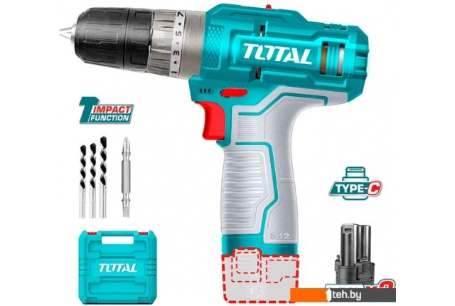 Фотографии, описание и технические характеристики модели Total TIDLI12202 (с 2-мя АКБ, кейс, набор оснастки, без ЗУ) взяты из открытых источников, официального сайта производителя или представительства Total в Республике Беларусь.