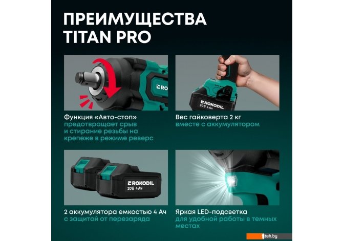 Фотографии, описание и технические характеристики модели Rokodil Titan Pro (с 2-мя АКБ) взяты из открытых источников, официального сайта производителя или представительства Rokodil в Республике Беларусь.
