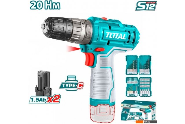 | Комплектация | - Аккумуляторная дрель-шуруповерт TIDLI12202 - 1 шт. - Аккумуляторная батарея TBLI12153 Li-Ion 1.5 А*ч - 2 шт. - Набор бит и сверл TACSDL24501 (45 шт.) - 1 шт. - Набор сверл TACSDL11601 (16 шт.) - 1 шт. - Инструкция - Коробка |
