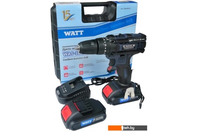 Шуруповерты, гайковерты, электроотвертки WATT WAS-18Li-3 1.018.Y29.23 (с 2-мя АКБ, кейс)