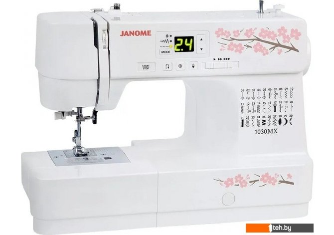 Фотографии, описание и технические характеристики модели швейной машинки Janome 1030 MX взяты из открытых источников, официального сайта производителя или представительства Janome в Республике Беларусь.