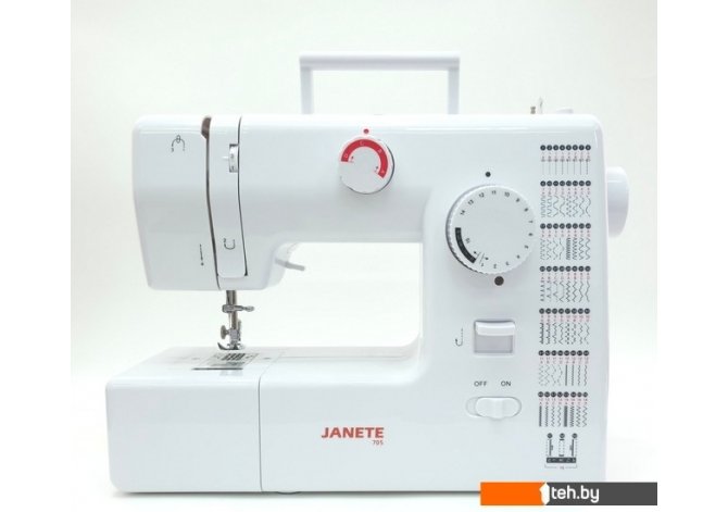 Фотографии, описание и технические характеристики модели швейной машинки Janete 705 взяты из открытых источников, официального сайта производителя или представительства Janete в Республике Беларусь.