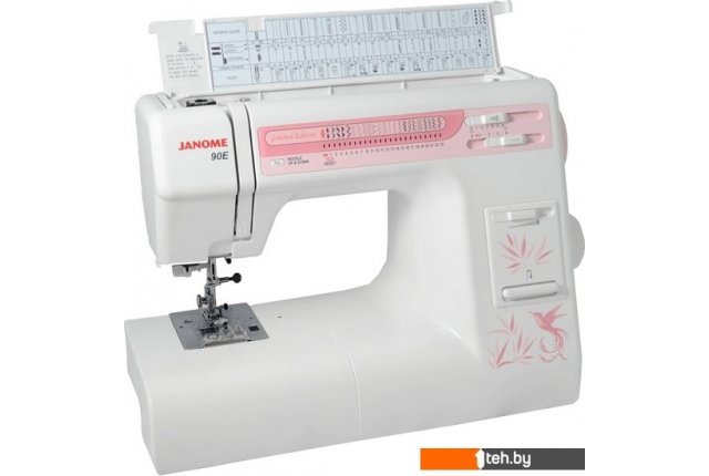 Фотографии, описание и технические характеристики модели швейной машинки Janome 90E взяты из открытых источников, официального сайта производителя или представительства Janome в Республике Беларусь.