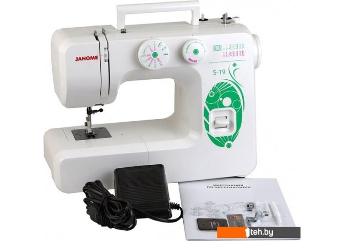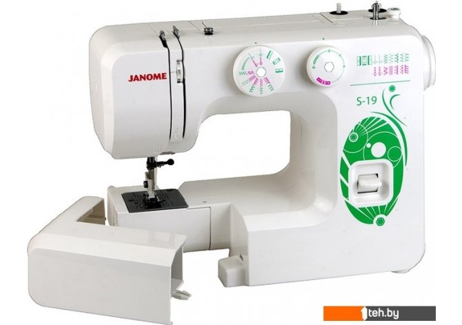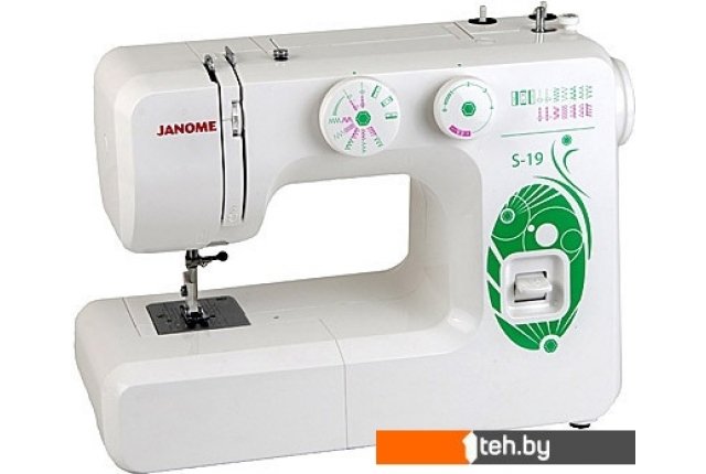 Фотографии, описание и технические характеристики модели швейной машинки Janome S-19 взяты из открытых источников, официального сайта производителя или представительства Janome в Республике Беларусь.
