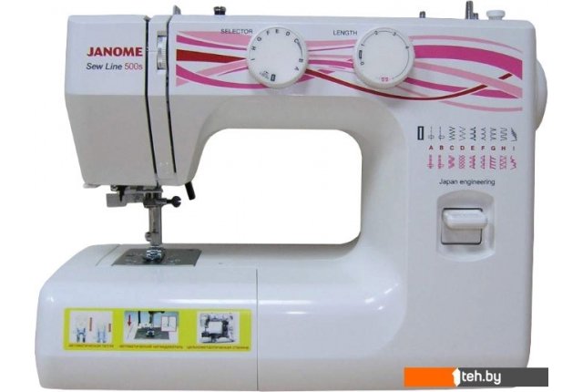Фотографии, описание и технические характеристики модели швейной машинки Janome Sew Line 500s взяты из открытых источников, официального сайта производителя или представительства Janome в Республике Беларусь.