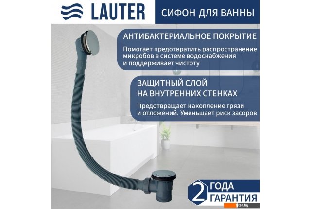 | Информация | - Сифон Lauter 21Y31000 — идеальное решение для вашей ванной комнаты. Этот трубный сифон предназначен для эффективного слива воды и обеспечивает надежную работу благодаря автоматическому механизму ClickClack. С его помощью вы сможете легко управлять сливом, не беспокоясь о протечках. - Изготовленный из качественных материалов, таких как пластик и латунь, сифон отличается долговечностью и устойчивостью к коррозии. Гладкая глянцевая поверхность не только придает ему стильный вид, но и облегчает уход за изделием. Самоочищающийся механизм гарантирует, что ваш сифон всегда будет в идеальном состоянии. - С максимальной скоростью стока воды 55.2 л/мин, этот сифон справляется с любыми задачами, связанными с отводом воды. Его горизонтальный выпуск и стандартный диаметр сливного отверстия 52 мм делают установку простой и быстрой. - Обратите внимание на наличие перелива длиной 68 см, который предотвращает переполнение ванны и обеспечивает дополнительную безопасность. Сифон Lauter 21Y31000 — это надежный и функциональный элемент, который станет незаменимым в вашей ванной комнате. |